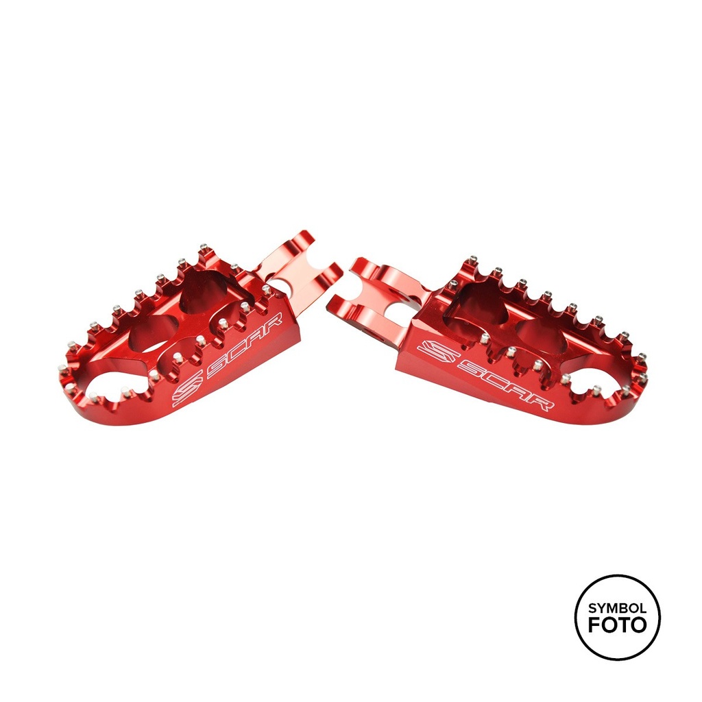 Cizmele SCAR sunt realizate din aluminiu special frezat CNC (cu 25% mai ușoare decât cele originale). Datorită știfturilor din oțel inoxidabil și a designului cu 25% mai lat decât suporturile de picior OEM (57 mm), acestea oferă o aderență și un confort excelent pentru motocross, enduro și freestyle. Livrare: 1 pereche